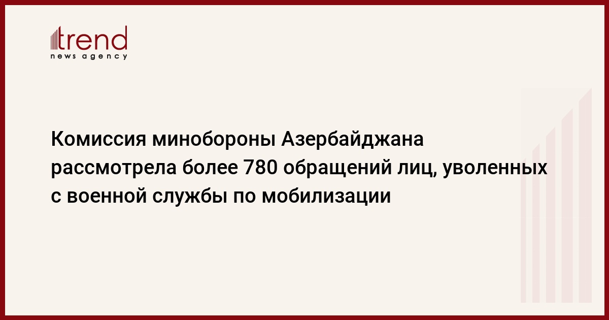 БАКУ /Trend/ - Продолжается работа комиссии по приему и рассмотрению обращений лиц, уволенных с военной службы по мобилизации, сообщает в четверг Trend со ссылкой на минобороны Азербайджана.