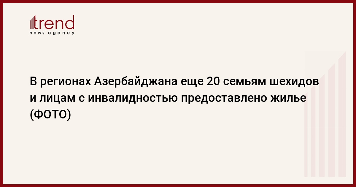 БАКУ /Trend/ - В Азербайджане в полном объеме реализована программа за 2020 год по предоставлению семьям шехидов и инвалидам Карабахской войны 1500 квартир и частных домов.