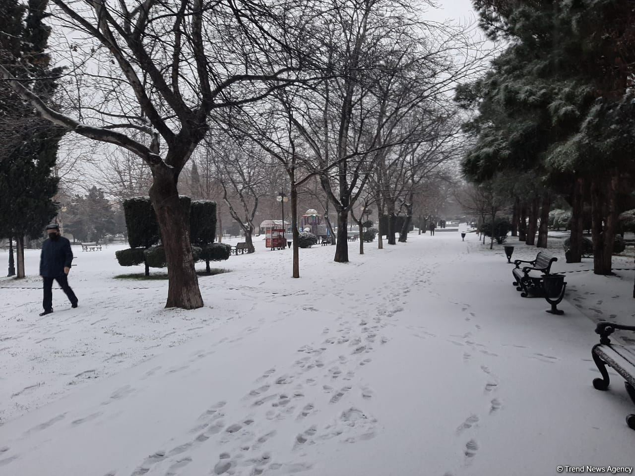 БАКУ / Trend/ - В Баку выпал первый снег, сообщает в четверг Trend.