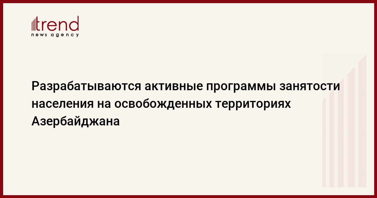 БАКУ /Trend/ - Одним из основных направлений деятельности министерства труда и социальной защиты населения Азербайджана является разработка гибких программ занятости населения, которое вернется на освобожденные территории. В связи с этим предусматривается наладить сотрудничество с Международной организацией труда (МОТ).