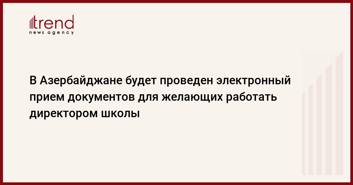 БАКУ /Trend/ - В Азербайджане 10-13 февраля будет проведен электронный прием документов для конкурса по приему на работу директоров государственных общеобразовательных школ, сообщает в понедельник Trend со ссылкой на Минобразования.