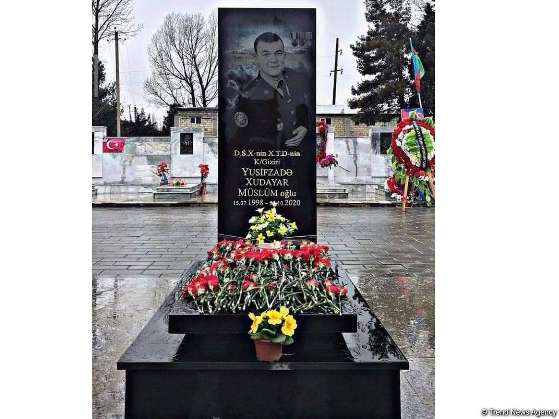 БАКУ /Trend/ - На могиле героически погибшего в Отечественной войне Худаяра Юсифзаде в Аллее шехидов в Барде установлено надгробие.