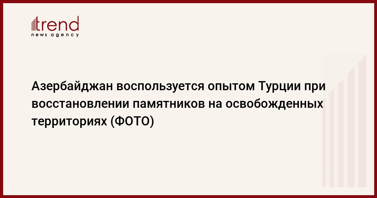 Азербайджан воспользуется опытом Турции в реставрации и ремонте памятников в богатом историческим и культурным наследием Карабахском регионе, освобожденном от оккупации в результате 44-дневной Карабахской войны осенью 2020 года.