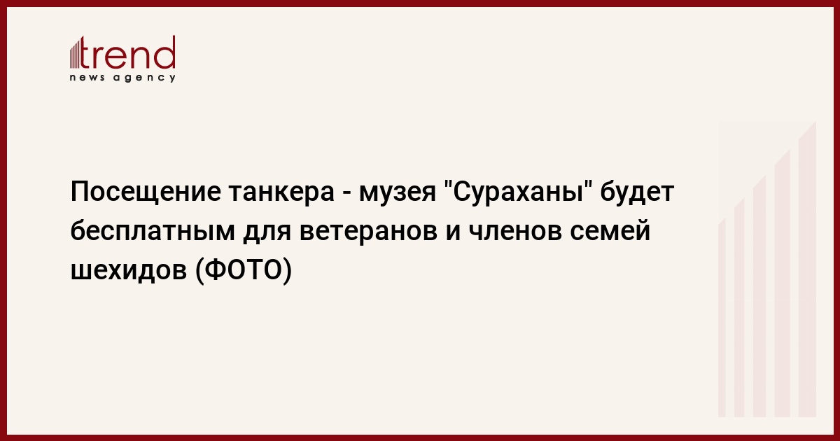Как сообщает в пятницу Trend, посещение "Сураханы", первого подобного музея в мире, будет бесплатным для ветеранов и членов семей шехидов.
