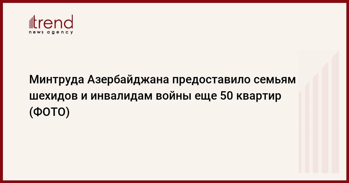 БАКУ /Trend/ - В новом жилом комплексе в бакинском поселке Рамана семьям шехидов и инвалидам войны предоставлено 50 квартир, сообщает в понедельник Trend со ссылкой на Министерство труда и социальной защиты населения Азербайджана.