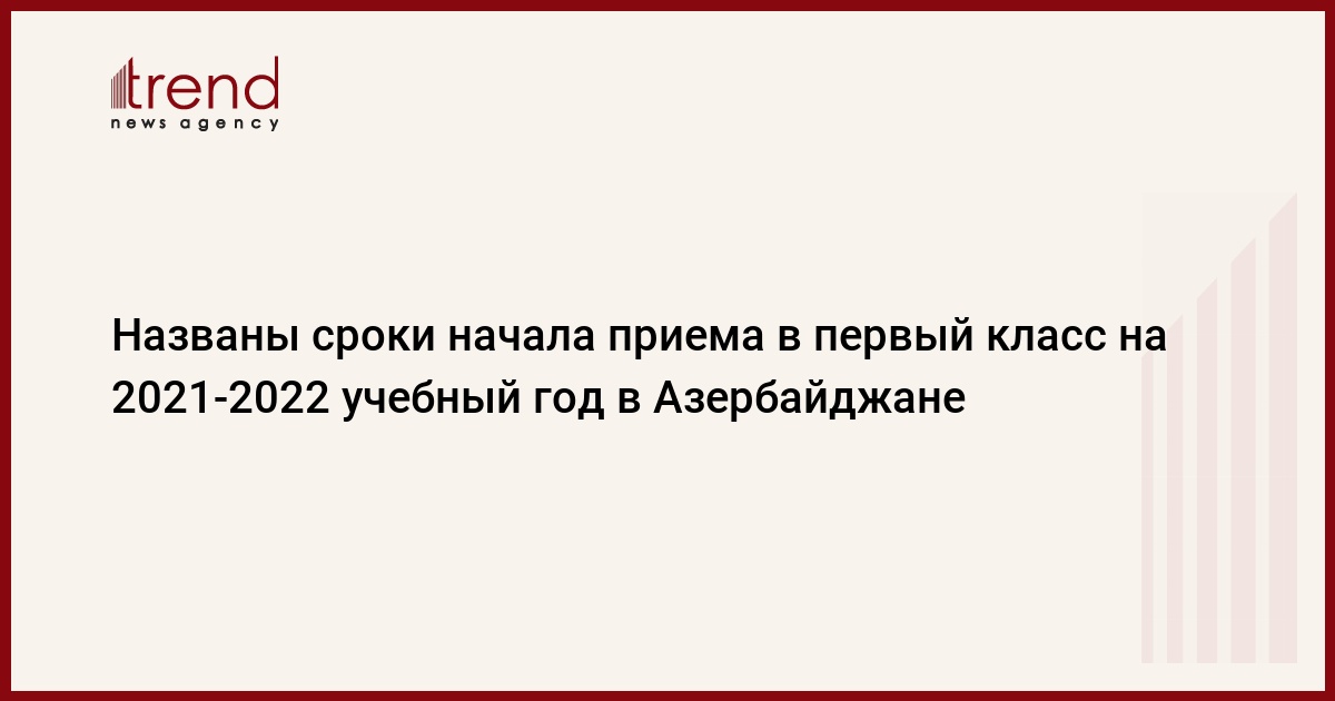 БАКУ /Trend/ - Прием детей в первый класс на 2021-2022 учебный год начнется во второй половине апреля, сообщает во вторник Trend со ссылкой на минобразования Азербайджана.