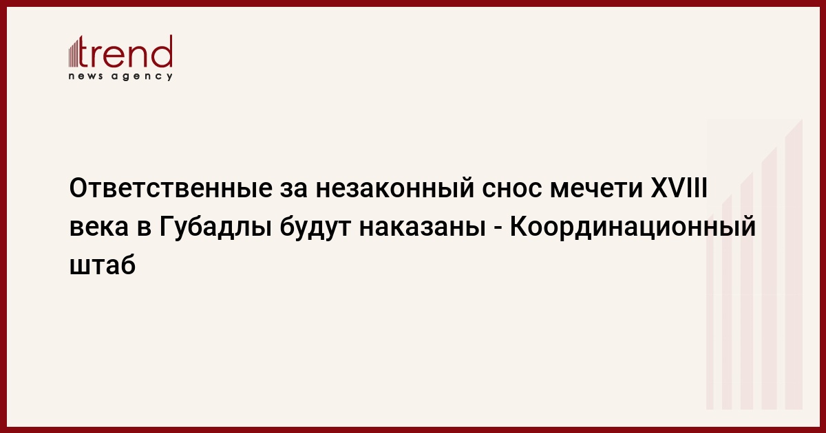 Как сообщили в среду Trend в Координационном штабе, созданном для решения в централизованном порядке вопросов на освобожденных от оккупации территориях, было установлено, что при строительстве автомобильной дороги Худаферин-Губадлы-Лачин в селе Юсифбейли Губадлинского района была снесена мечеть XVIII века.
