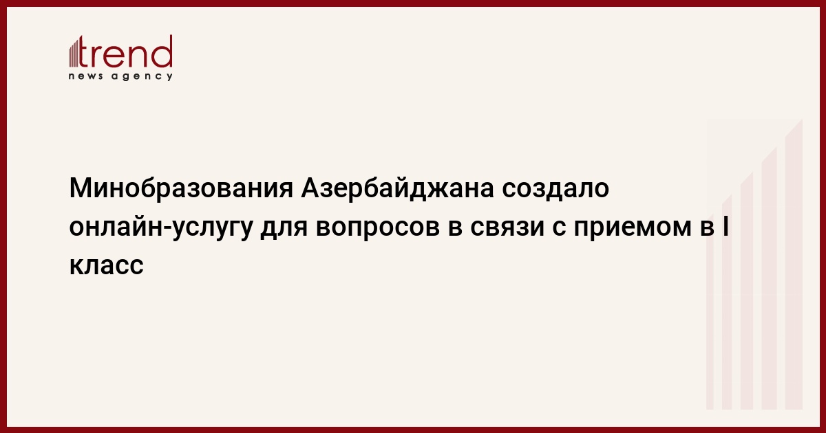 БАКУ /Trend/ - Министерство образования Азербайджана создало онлайн-услугу для вопросов в связи с приемом в I класс, сообщает во вторник Trend со ссылкой на ведомство.