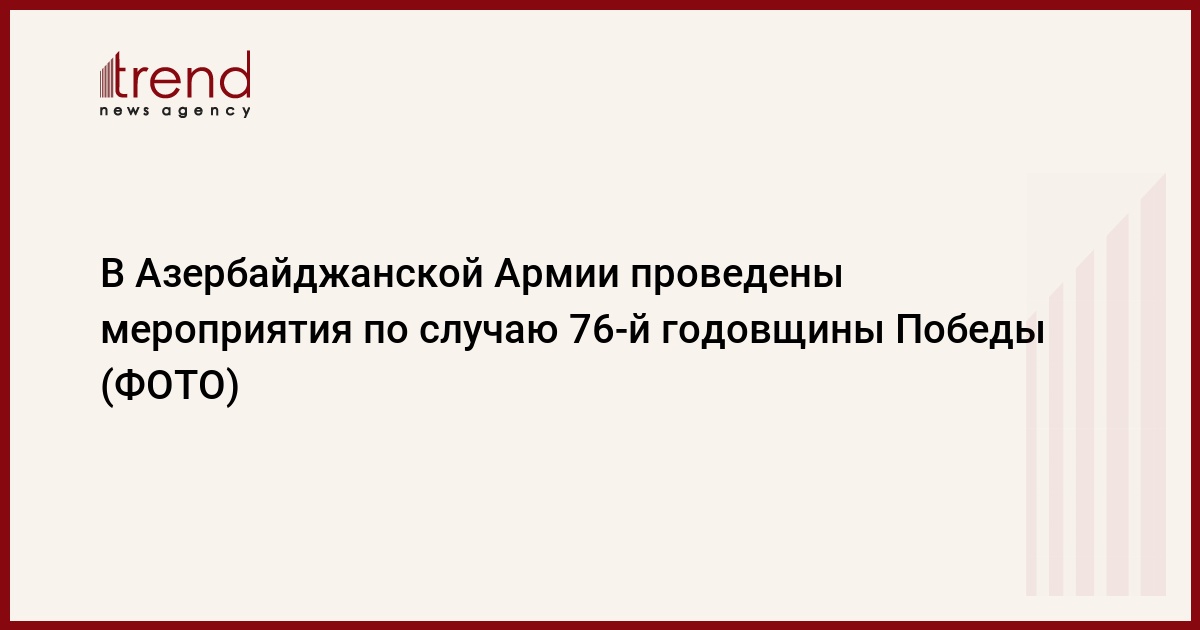 БАКУ /Trend/ - В воинских объединениях, соединениях, частях, специальных военно-учебных заведениях, центральных и гарнизонных домах офицеров проведены мероприятия по случаю празднования 76-й годовщины Победы над фашизмом в Великой Отечественной Войне.