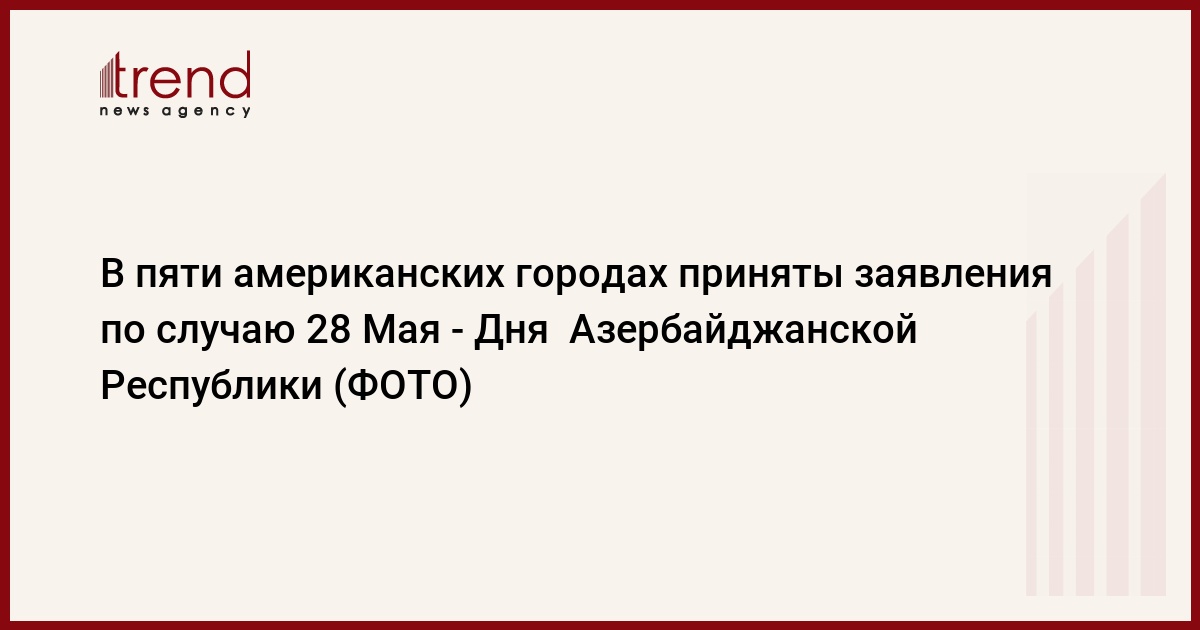БАКУ /Trend/ - В Чикаго (штат Иллинойс) и городах Дарем, Фейетвилл, Апекс, Шарлотт (штат Северная Каролина) приняты заявления касательно 28 мая 2021 года - Дня Республики Азербайджана, сообщает в четверг Trend со ссылкой на Госкомитет по работе с диаспорой.
