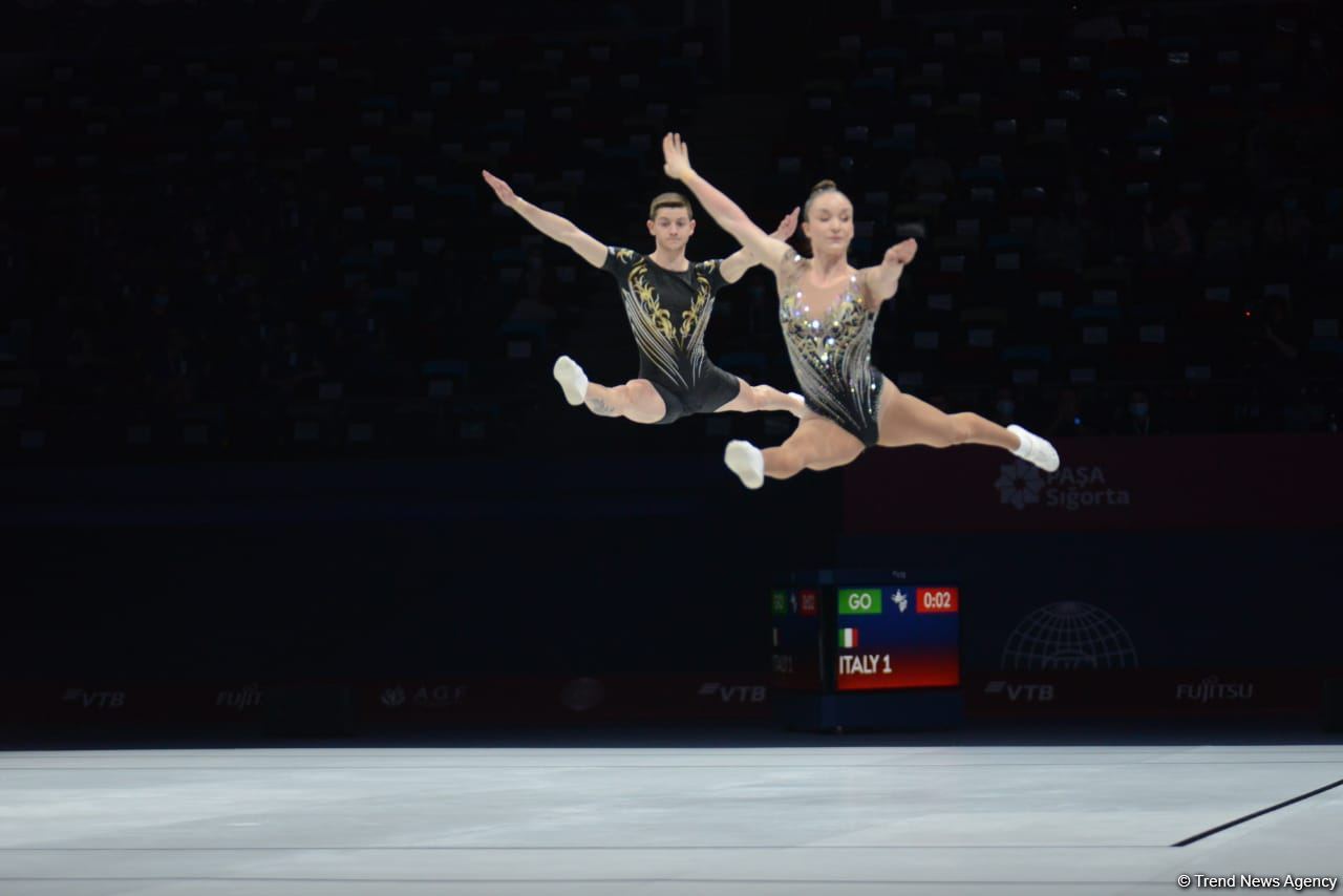 БАКУ /Trend/ - В ходе второго дня чемпионата мира по аэробной гимнастике в Национальной арене гимнастики в Баку определились финалисты среди смешанных пар, сообщает в пятницу Trend.