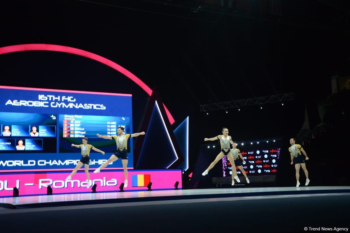 БАКУ /Trend/ - Первое место на 16-м чемпионате мира по аэробной гимнастике в Баку среди групп завоевали представители Румынии с результатом 22.583 балла, сообщает в субботу Trend.
