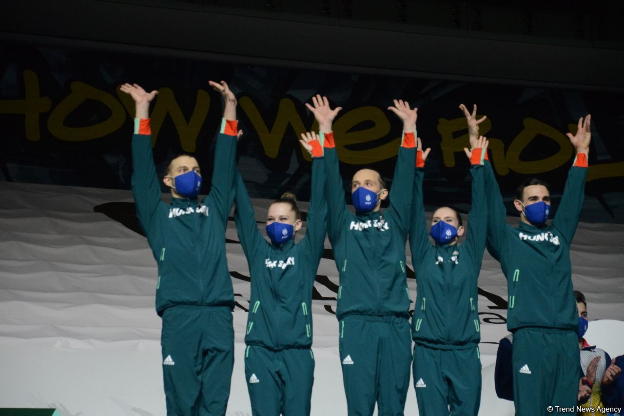 БАКУ /Trend/ - В субботу, 29 мая, в Национальной арене гимнастики в Баку прошла церемония награждения победителей и призеров чемпионата мира по аэробной гимнастике среди групп и в программе аэродэнс, сообщает Trend.