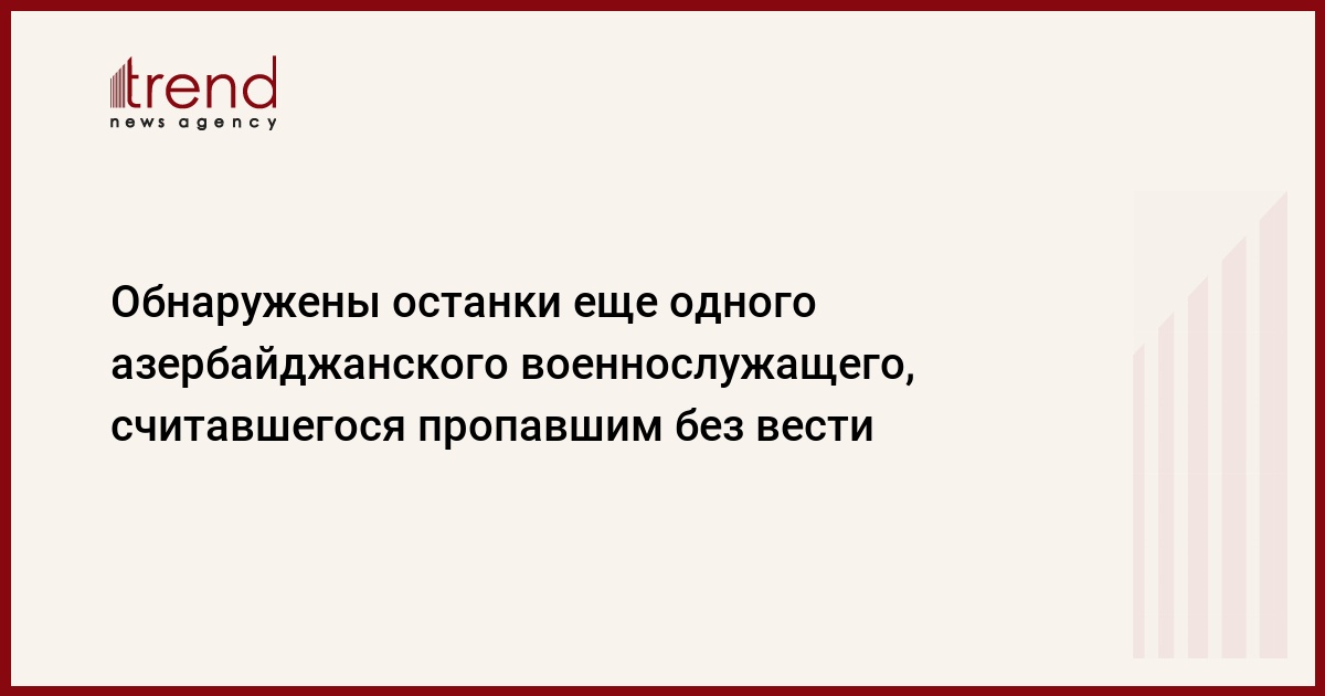 БАКУ /Trend/ - В результате проведенных оперативно - следственных мероприятий обнаружены останки еще одного азербайджанского военнослужащего, считавшегося пропавшим без вести.