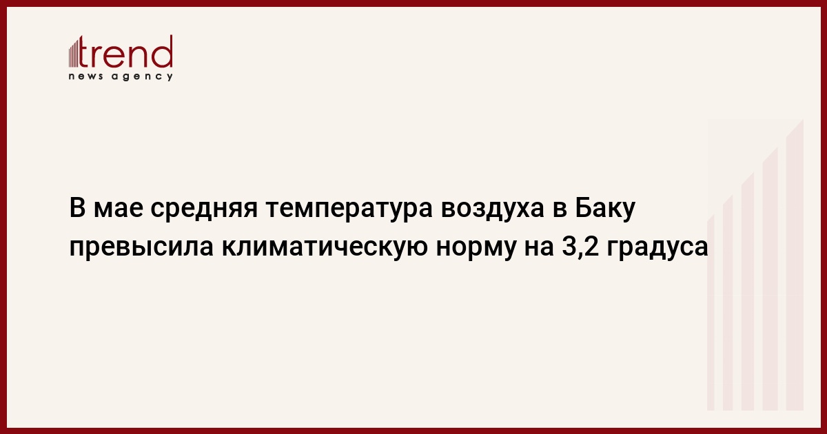 БАКУ /Trend/ - В мае средняя температура воздуха в Баку составила около 21,2 градуса, превысив климатическую норму на 3,2 градуса.