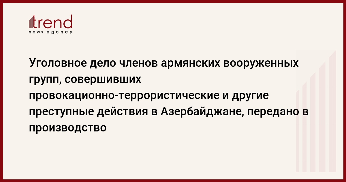 БАКУ /Trend/ - Уголовное дело членов армянских вооруженных групп, совершивших провокационно-террористические и другие преступные действия в Азербайджане, передано в производство, сообщает в четверг Trend.