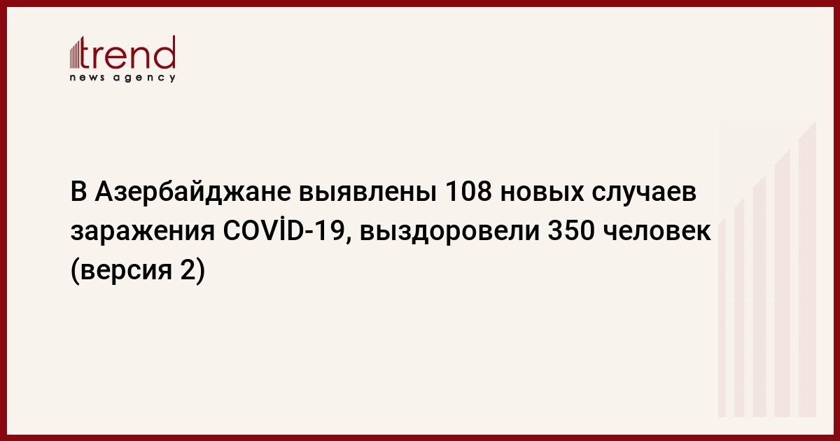 БАКУ /Trend/ - В Азербайджане за последние сутки выявлены 108 новых случаев заражения COVİD-19, выздоровели 350 человек, скончались трое, сообщает в субботу Trend со ссылкой на Оперативный штаб при Кабинете министров.