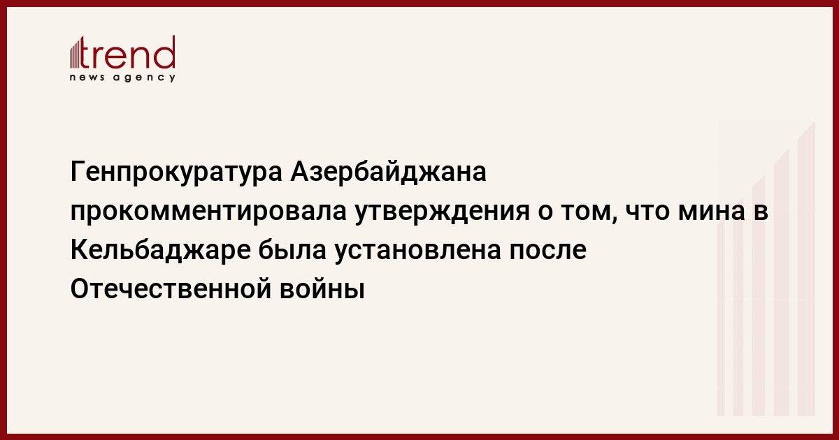 БАКУ /Trend/ - Генпрокуратура Азербайджана прокомментировала утверждения о том, что мина в Кельбаджаре была установлена после окончания Отечественной войны, сообщает в понедельник Trend со ссылкой на Генеральную прокуратуру.