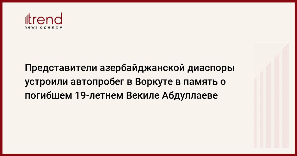 БАКУ /Trend/ - В Воркуте представители азербайджанской диаспоры устроили автопробег в память о 19-летнем Векиле Абдуллаеве, которому при задержании нанес смертельное ранение в голову инспектор ГИБДД Александр Гусев, передает Trend во вторник со ссылкой на российские СМИ.