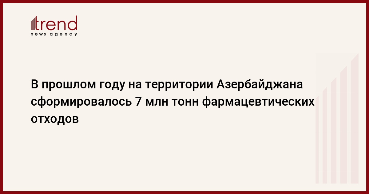 БАКУ /Trend/ - В прошлом году на территории Азербайджана сформировалось 7 миллионов тонн фармацевтических отходов.