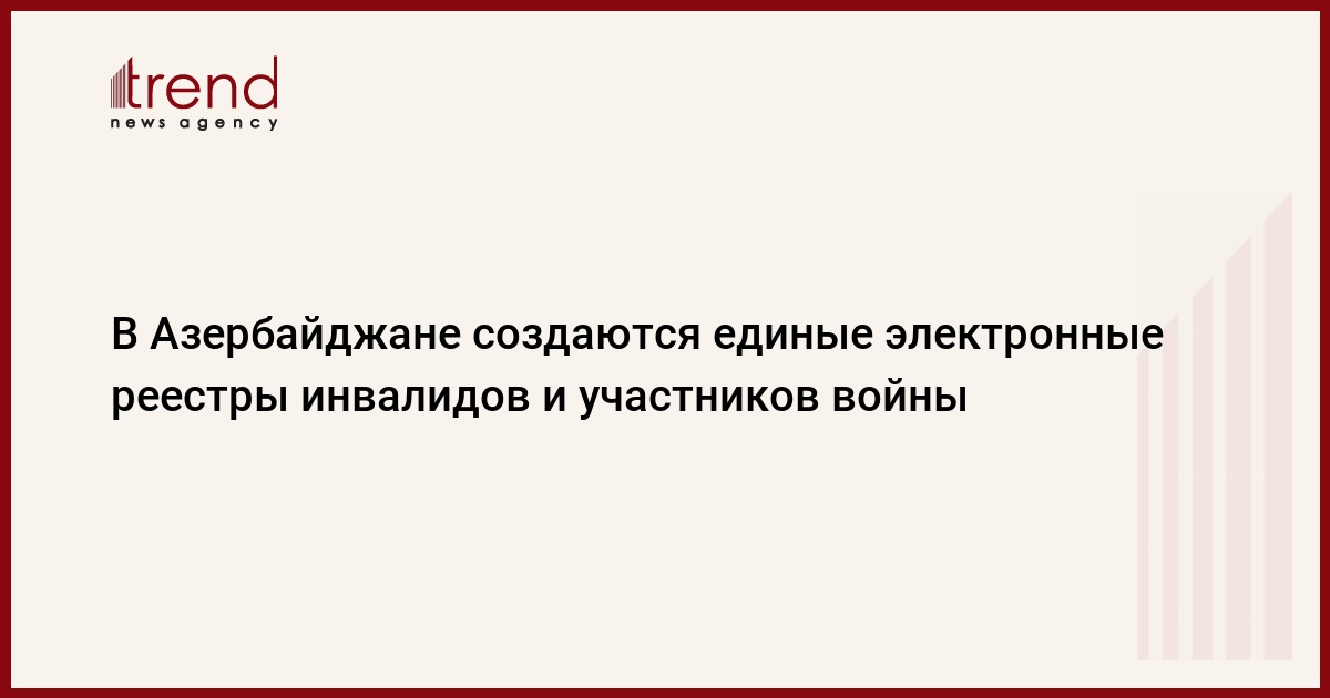 БАКУ /Trend/ - В Азербайджане создаются единые электронные реестры инвалидов и участников войны, лиц, получивших статус шехида и члена семьи шехида, сообщает в субботу Trend со ссылкой на министерство труда и социальной защиты населения.