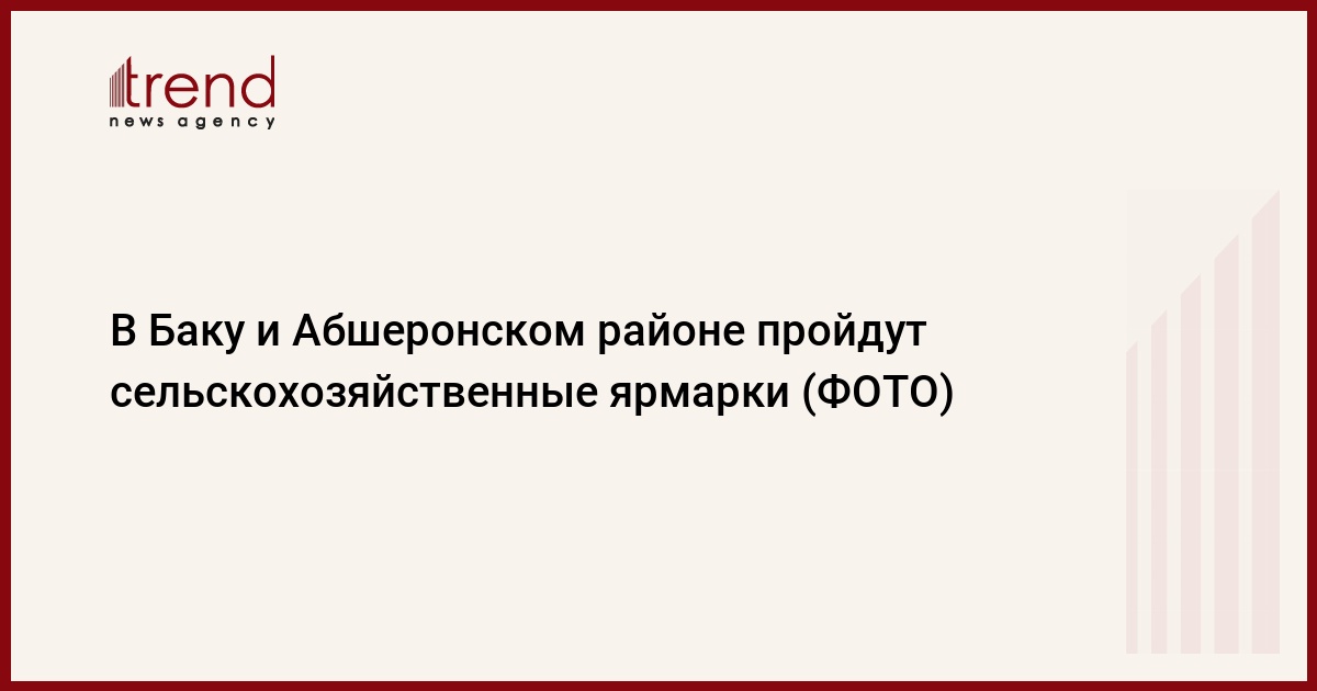 БАКУ /Trend/ - В Баку и Абшеронском районе 19-20 июня будут организованы сельскохозяйственные ярмарки «Из села в город», сообщает в пятницу Trend со ссылкой на министерство сельского хозяйства.