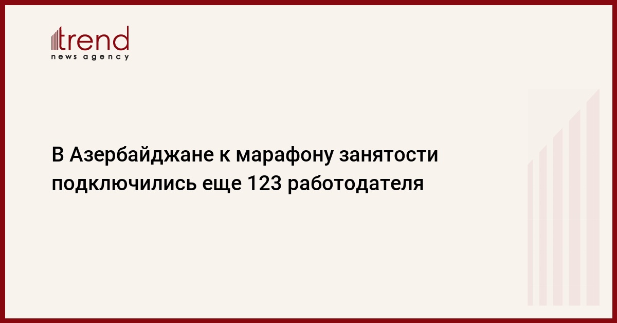 БАКУ / Trend/ - В Азербайджане к марафону занятости с целью трудоустройства членов семей шехидов и раненых участников Отечественной войны подключились еще 123 работодателя, сообщает во вторник Trend со ссылкой на Министерство труда и социальной защиты населения.