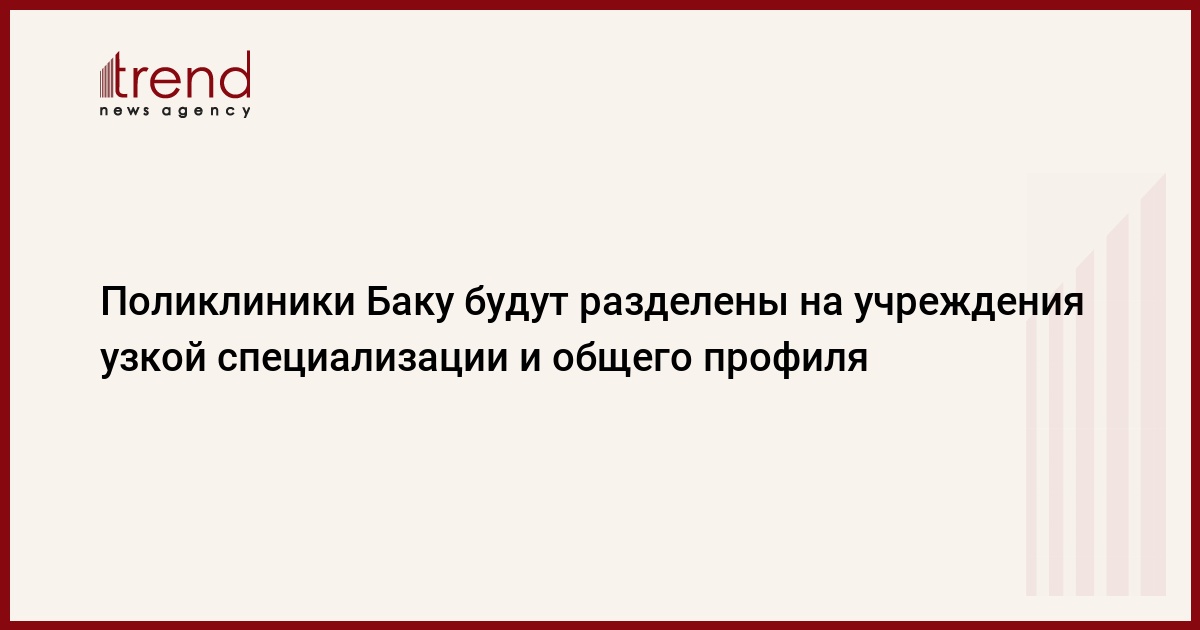 БАКУ /Trend/ - Поликлиники Баку будут разделены: в некоторых из них будут оказываться услуги первичного здравоохранения, в других – будут сосредоточены специалисты остальных врачебных профессий.