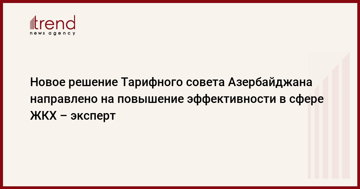БАКУ /Trend/ - Новое решение Тарифного (ценового) совета Азербайджана направлено на повышение эффективности в сфере ЖКХ.