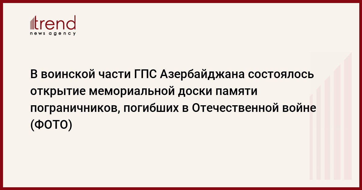 БАКУ /Trend/ - В воинской части Сил быстрого реагирования Государственной пограничной службы (ГПС) Азербайджана состоялось открытие мемориальной доски памяти военнослужащих ГПС, погибших в Отечественной войне.