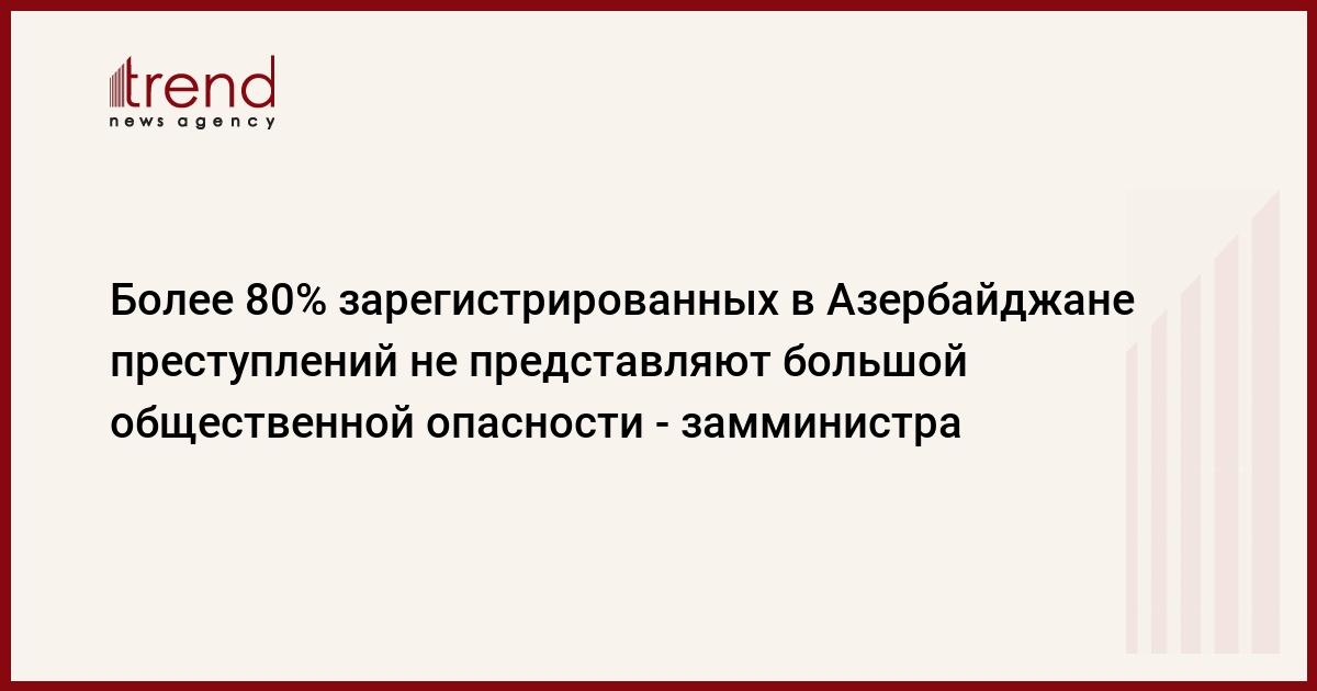 БАКУ /Trend/ - Из общего числа зарегистрированных в первой половине 2021 года в Азербайджане преступлений 84,3 процента не представляли большой общественной опасности.