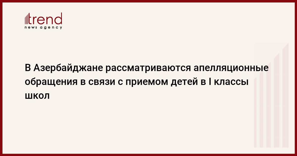 БАКУ /Trend/ - В Азербайджане продолжается рассмотрение апелляционных обращений в связи с приемом детей в первые классы школ, сообщает во вторник Trend со ссылкой на минобразования.
