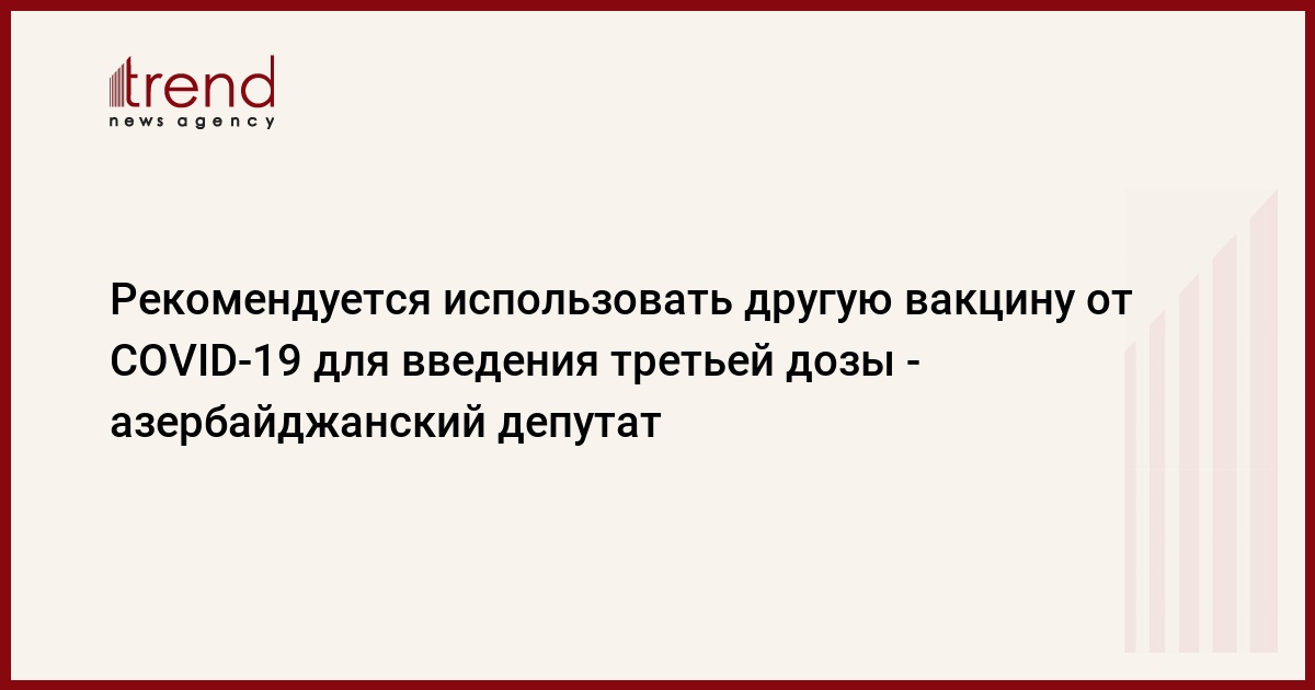 БАКУ /Trend/ - Рекомендуется использовать другую вакцину от COVID-19 для введения третьей дозы, так как это оказывает положительное влияние на организм, сказал в пятницу Trend зампред комитета по здравоохранению Милли Меджлиса (парламент) Азербайджана Рашад Махмудов.