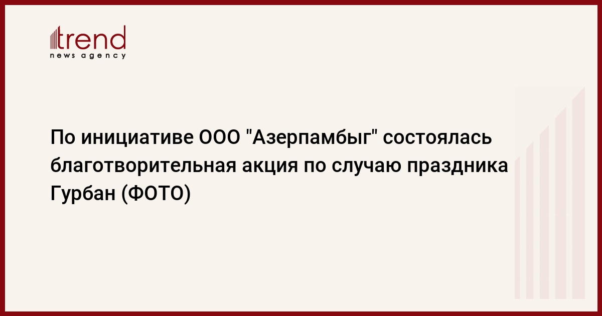 Как сообщает в среду Trend, в качестве продолжения этой благородной миссии по инициативе ООО "Агропромышленный комплекс Азерпамбыг" состоялась благотворительная акция по случаю праздника Гурбан.