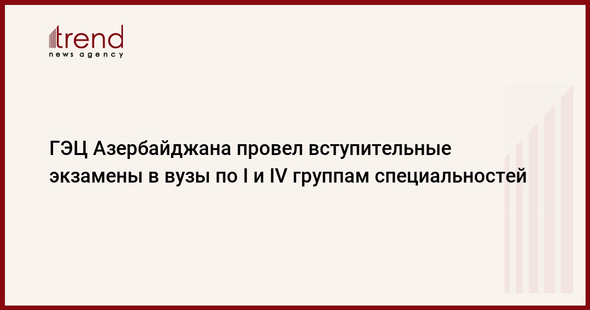 БАКУ /Trend/ - 28 июля Государственный экзаменационный центр (ГЭЦ) провел в 22 городах и районах Азербайджана вступительные экзамены в вузы по I и IV группам специальностей, сообщает в среду Trend со ссылкой на ГЭЦ.