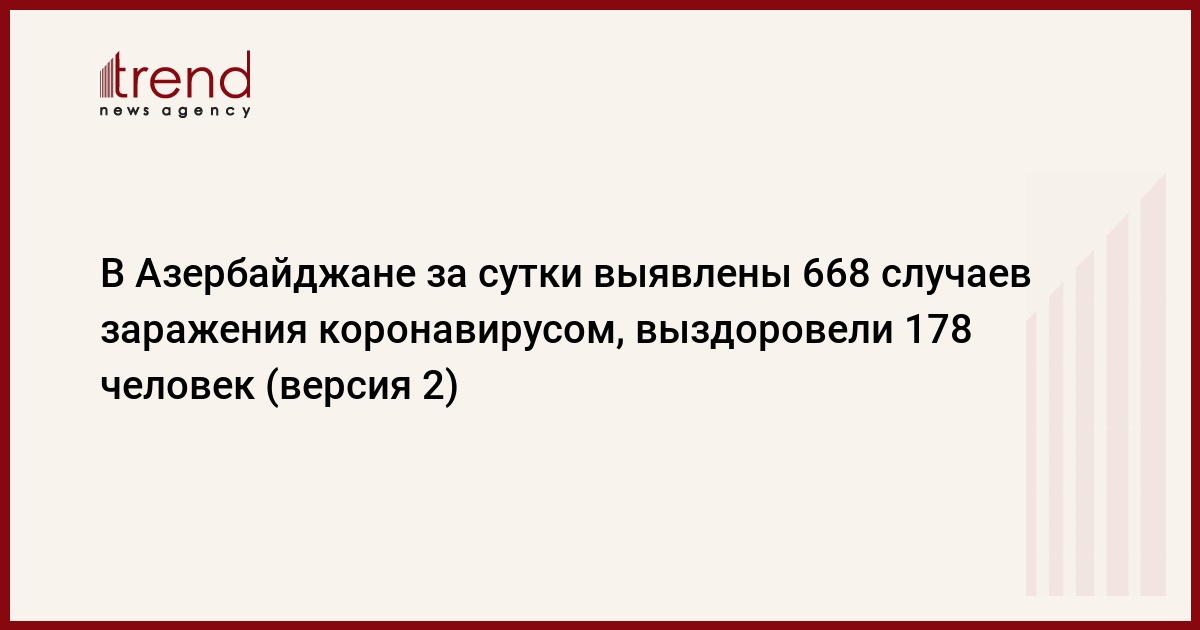 БАКУ /Trend/ - В Азербайджане за последние сутки выявлены 668 случаев заражения коронавирусом, 178 человек выздоровели, трое - скончались, сообщает в пятницу Trend со ссылкой на Оперативный штаб при Кабинете министров.