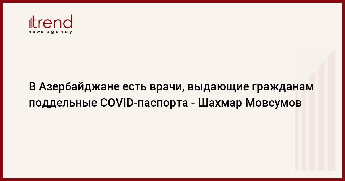 «Стало известно, что те, кто якобы вакцинировался, а потом заболел коронавирусом, имеют поддельные COVID-паспорта. Сейчас они находятся в тяжелом состоянии в реанимации. Выдавшие поддельные COVID-паспорта врачи сейчас привлекаются к ответственности. Люди играют не только своей жизнью, но и подрывают имидж государства. Соответствующие органы продолжат борьбу с этим явлением. Еще раз предупреждаем, что медучреждения, выдающие поддельные COVID-паспорта, будут нести за это ответственность», - сказал Мовсумов.
