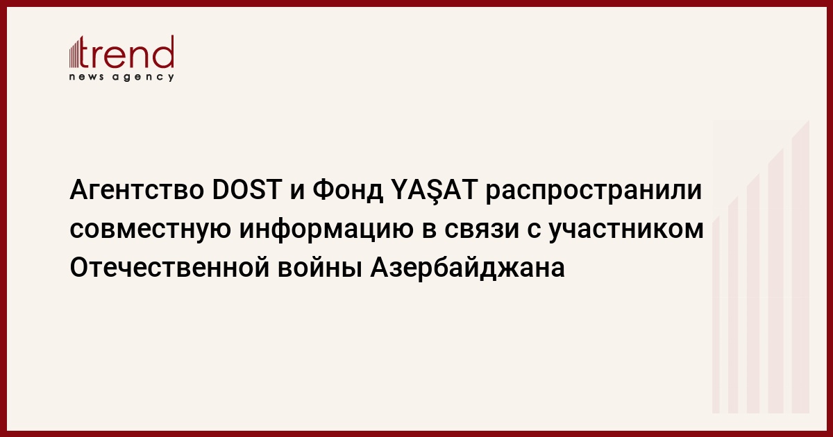 Как передает в пятницу Trend, об этом говорится в совместной информации Агентства DOST и Фонда YAŞAT.