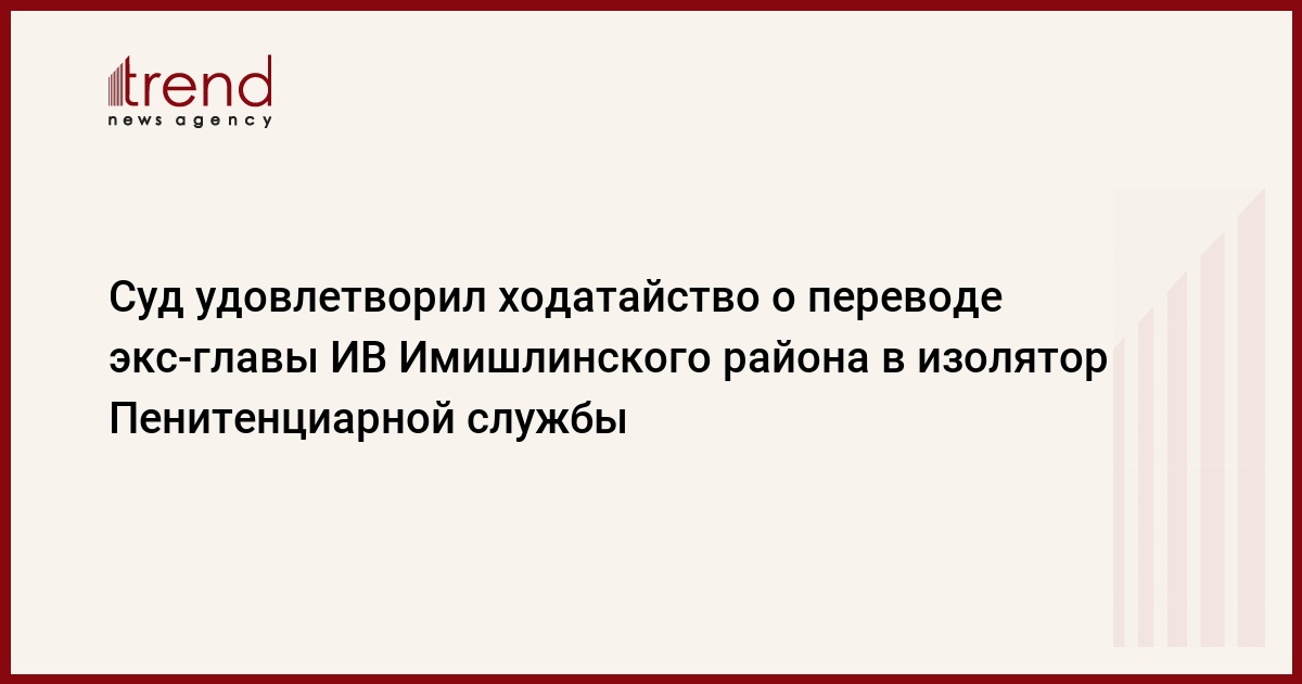 БАКУ /Trend/ - Суд удовлетворил ходатайство о переводе экс-главы ИВ Имишлинского района Вильяма Гаджиева из изолятора Службы государственной безопасности (СГБ) в изолятор Пенитенциарной службы минюста.