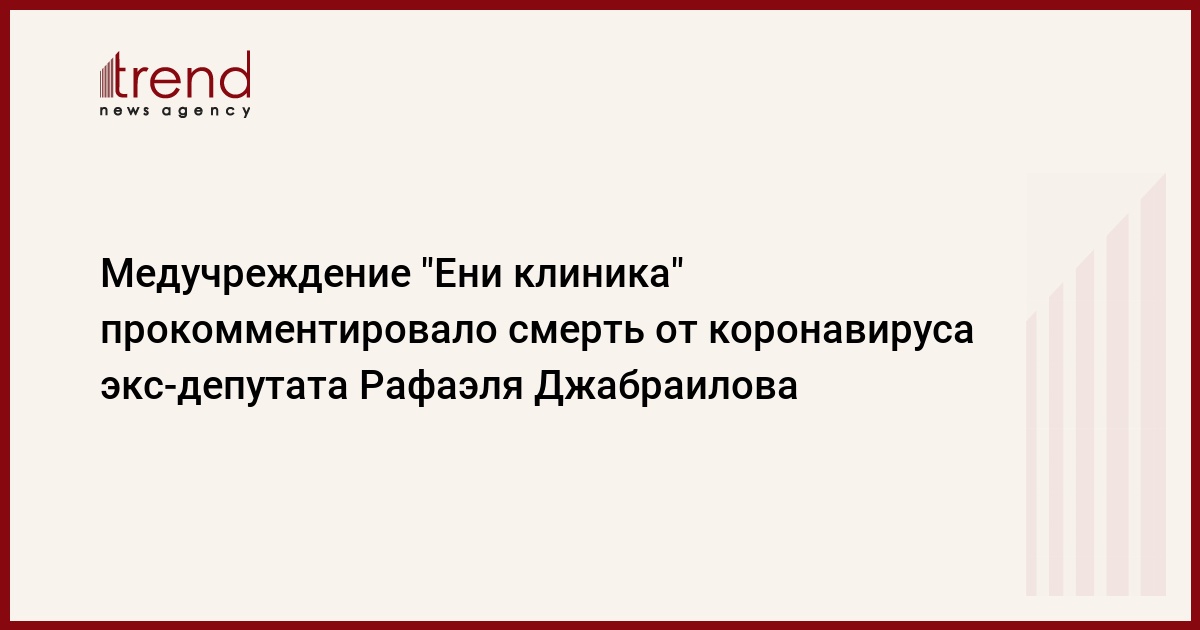 Как передает в четверг Trend, об этом сообщили в медучреждении «Ени клиника».