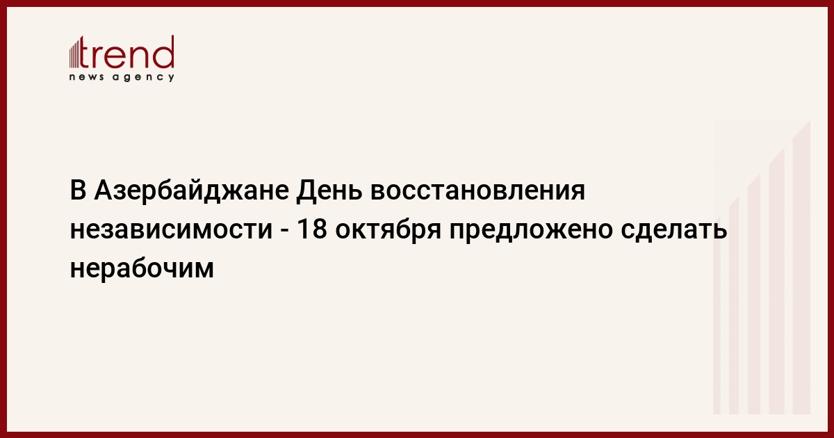 БАКУ /Trend/ - В Азербайджане 18 октября – День восстановления независимости должен быть нерабочим.