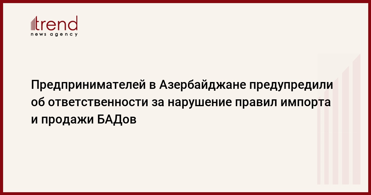 Как передает в понедельник Trend со ссылкой на агентство, зафиксировано множество случаев нарушения предпринимателями, импортирующими БАДы, требований соответствующего законодательства.