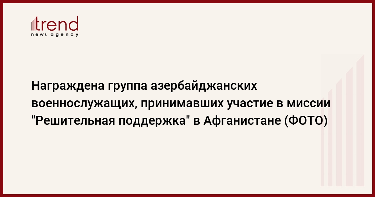 БАКУ /Trend/ - Приказом министра обороны награждена группа военнослужащих азербайджанской армии, принимавших участие в миссии "Решительная поддержка" в Афганистане.