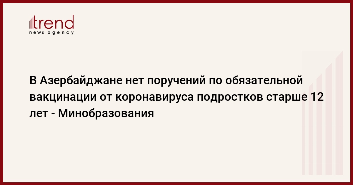 БАКУ /Trend/ - В Азербайджане нет поручений по обязательной вакцинации подростков старше 12 лет.