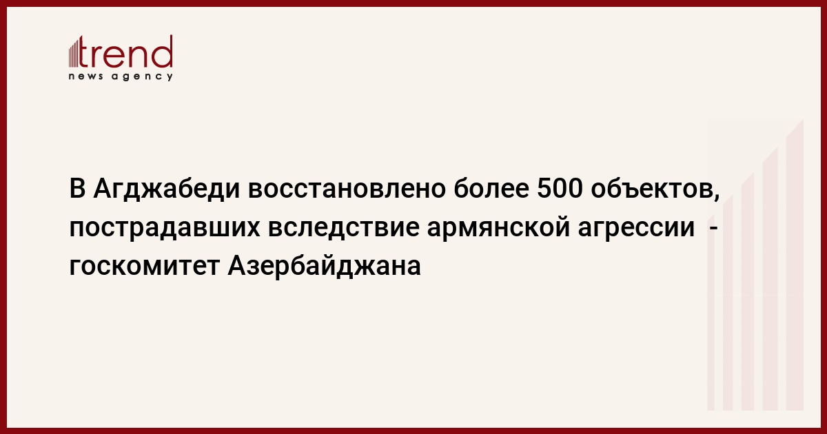По данным госкомитета, в результате армянской агрессии во время 44-дневной войны был нанесен ущерб более 13 тысячам домов в 11 городах и районах Азербайджана. Строительные и ремонтно-восстановительные работы завершены уже по более чем 12 тысячам жилых и нежилых объектов.