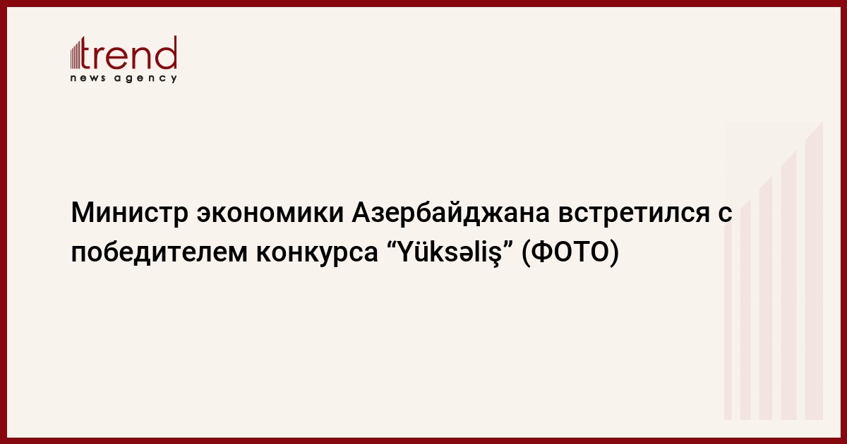 БАКУ /Trend/ - Министр экономики Азербайджана Микаил Джаббаров встретился с победителем конкурса "Yüksəliş" Зией Мурселзаде, сообщает в понедельник Trend.