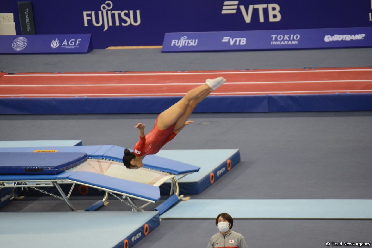 БАКУ /Trend/ - В Национальной арене гимнастики в Баку в ходе первого дня 28-х Всемирных соревнований среди возрастных групп по прыжкам на батуте, двойном мини-батуте и акробатической дорожке (тамблинг) в Баку стартовали финальные соревнования, сообщает Trend.