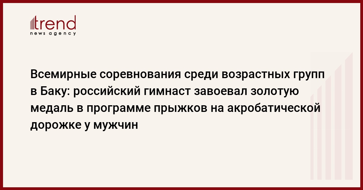 БАКУ /Trend/ - Российский гимнаст Игорь Шикунов (36.200 балла) завоевал золотую медаль на Всемирных соревнованиях среди возрастных групп по прыжкам на батуте и тамблингу в Баку в программе прыжков на акробатической дорожке у мужчин в возрастной категории 17-21 год, сообщает в пятницу Trend.
