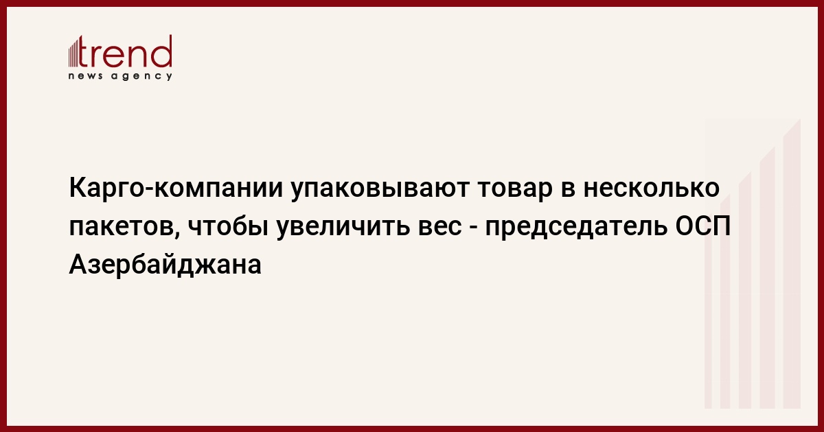 БАКУ /Trend/ - В соцсетях размещена информация о том, что некоторые карго-компании искусственно увеличивают вес для получения дополнительной прибыли, и доставленный из-за рубежа товар упаковывается в несколько пакетов и слоев бумаги.