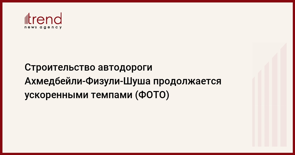 Напомним, что автодорога Ахмедбейли-Физули-Шуша протяженностью 81,6 километра начинается от магистрали М6 Гаджигабул-Горадиз-Агбенд-Зангезурский коридор и проходит через освобожденные Физулинский, Ходжавендский, Ходжалинский и Шушинский районы.